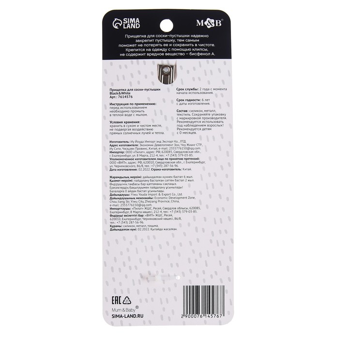 Держатель для соски - пустышки силиконовый Black&White — Характеристики