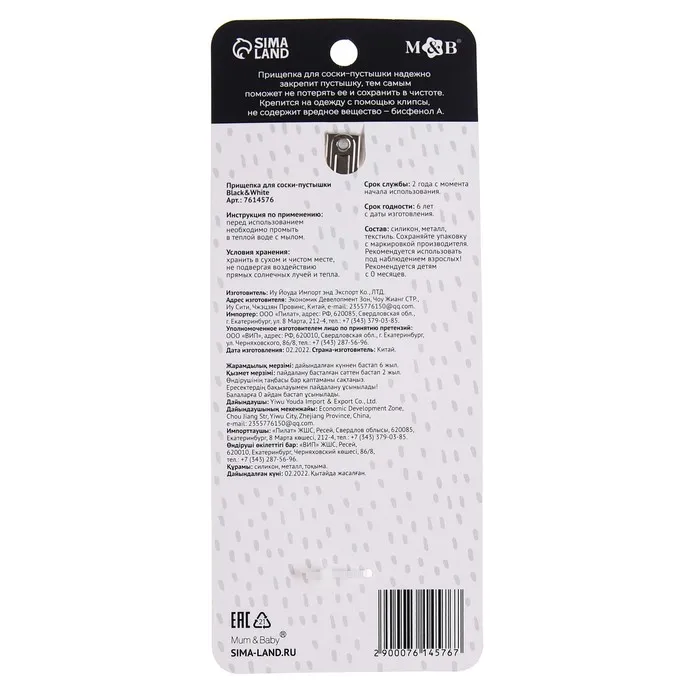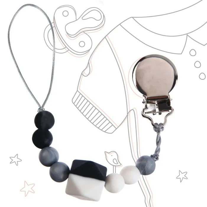 Изделие фиксируется на одежде ребёнка. На конце цепочки есть карабин, который зацепляется за кольцо пустышки. Надёжное крепление убережёт вещь от падения на пол, если малютка случайно выронит её изо рта.
