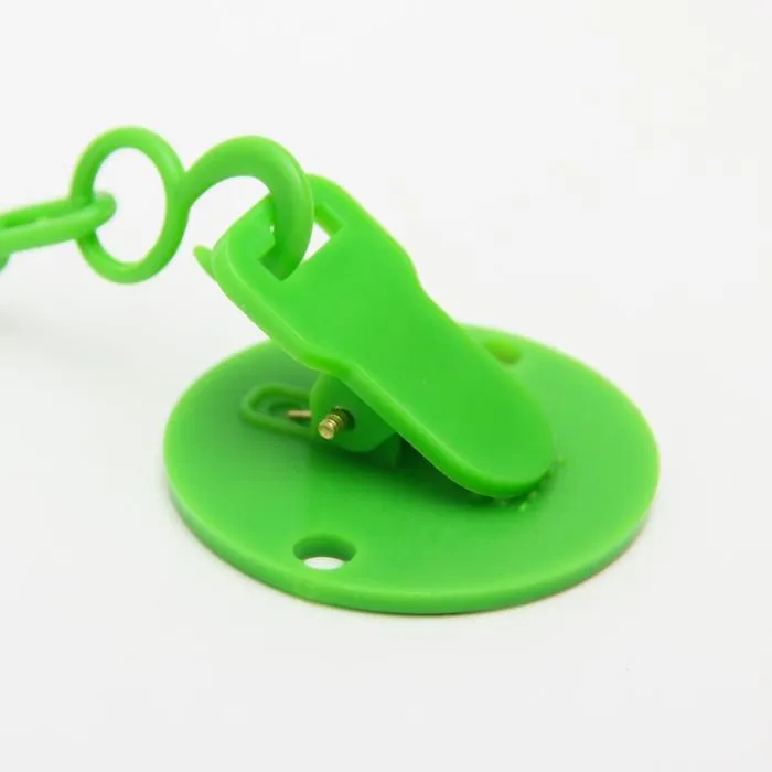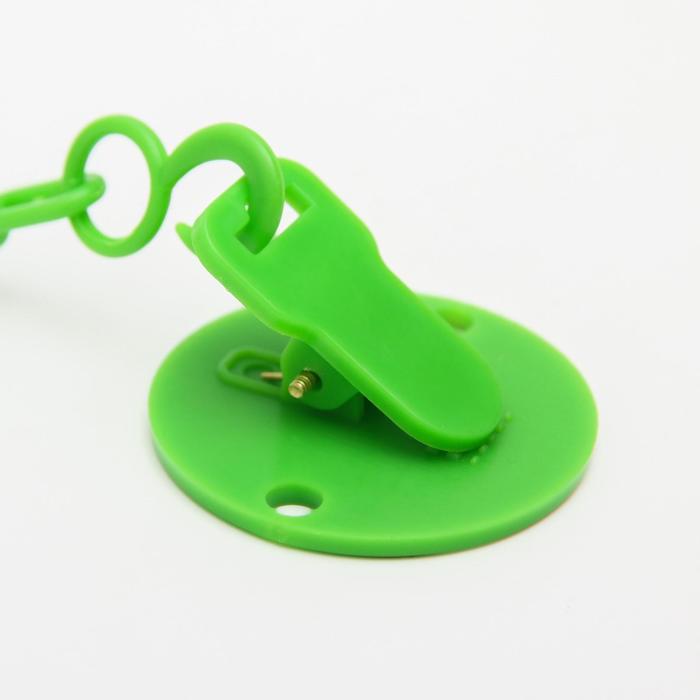 Изделие фиксируется на одежде ребёнка. На конце цепочки есть карабин, который зацепляется за кольцо пустышки. Надёжное крепление убережёт вещь от падения на пол, если малютка случайно выронит её изо рта.