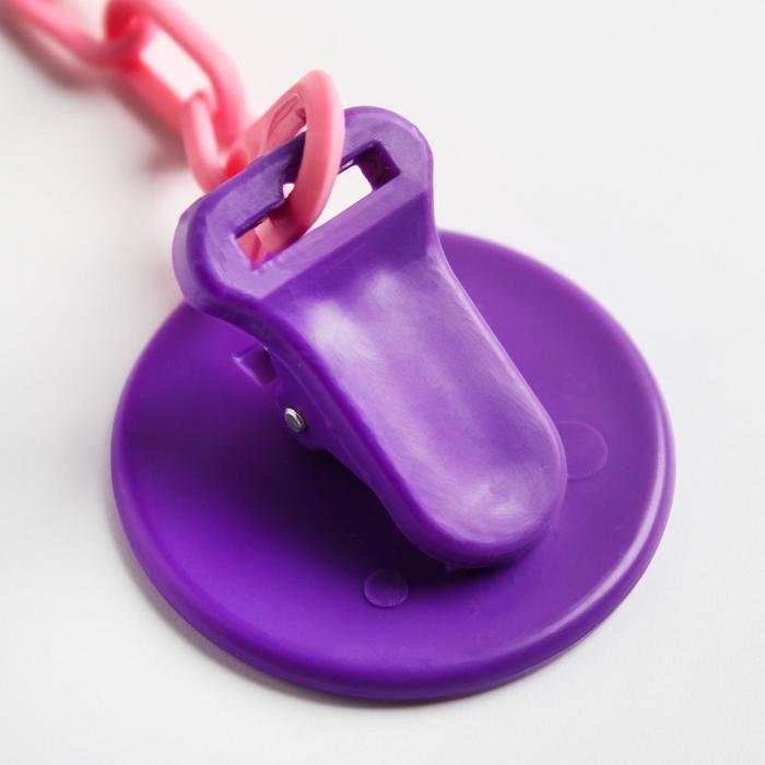 Изделие фиксируется на одежде ребёнка. На конце цепочки есть карабин, который зацепляется за кольцо пустышки. Надёжное крепление убережёт вещь от падения на пол, если малютка случайно выронит её изо рта.