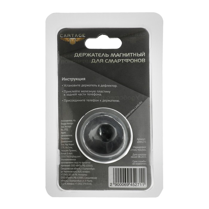 Держатель для телефона Cartage, магнитный, в дефлектор, серый — Характеристики