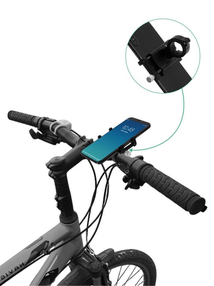 Держатель легко устанавливается и фиксируется на руле велосипеда, предоставляя возможность безопасно пользоваться телефоном для навигации, прослушивания музыки или получения уведомлений во время поездки.
