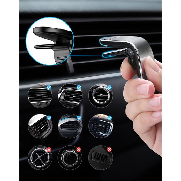 Магнитный держатель телефона "Cartage" без труда устанавливается в дефлектор воздуховода. Надёжно фиксирует устройство и позволяет при необходимости повернуть его на 360 градусов.