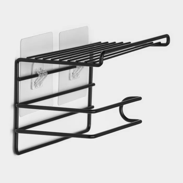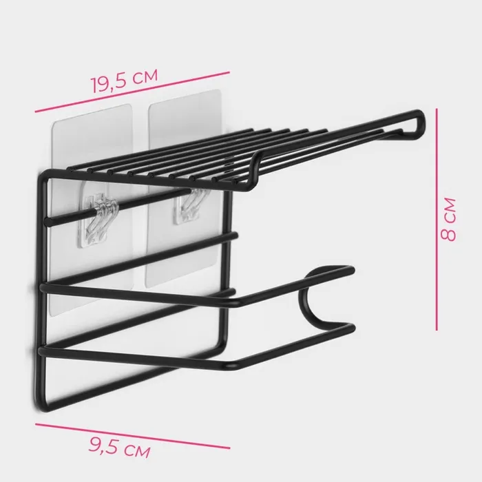 Держатель для туалетной бумаги Доляна, с полочкой, 19.5×9.5×8 см, чёрный — Характеристики