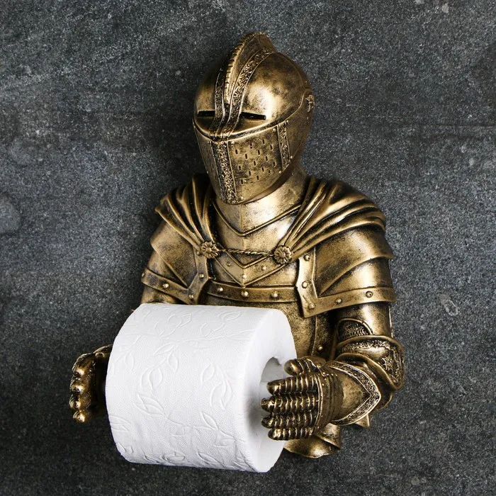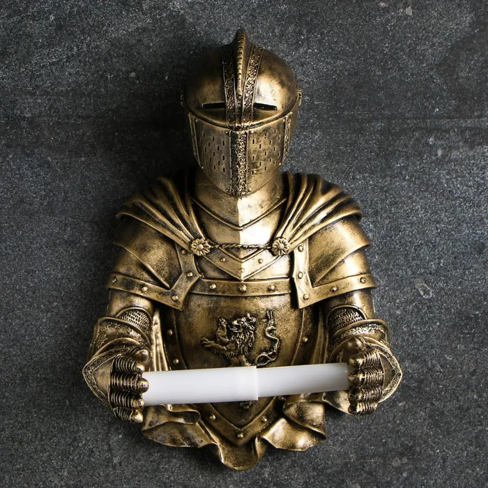 Откройте для себя удивительный аксессуар, который не только станет функциональным помощником, но и добавит неповторимый стиль вашему интерьеру — держатель для туалетной бумаги в форме рыцаря. Этот выразительный элемент декора обязательно привлечет внимание и станет настоящей изюминкой вашей ванной комнаты.