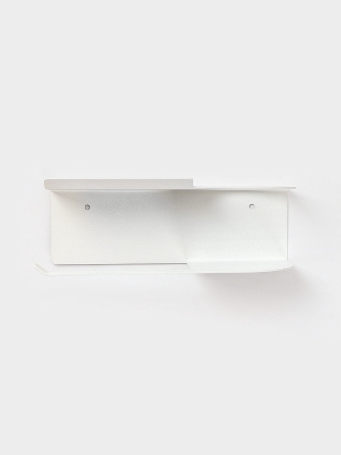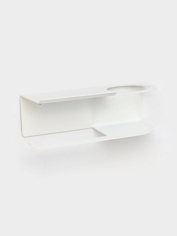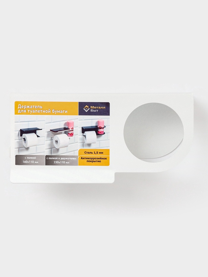 - Полка расположена над держателем, не мешая смене рулона и оставляя место для освежителя воздуха стандартного диаметра.