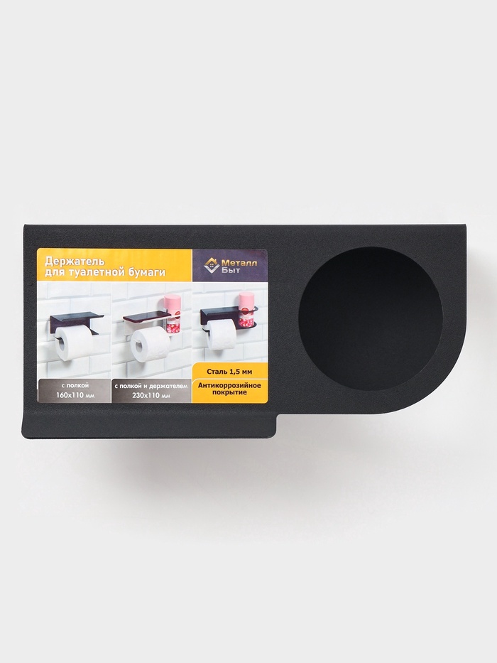 Держатель для туалетной бумаги с полочкой с отверстием для освежителя, чёрный — Характеристики