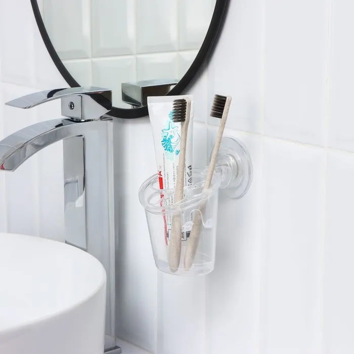 Держатель для зубных щёток и пасты самоклеющийся Доляна Elemental, 12.5×11.5×11 см, прозрачный — Характеристики