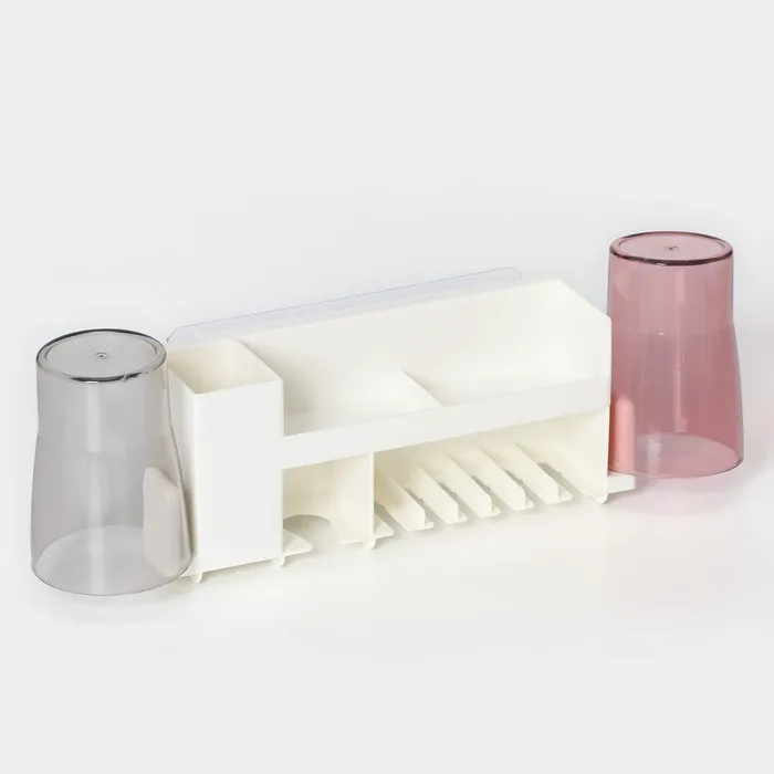 Держатель для зубных щёток с 2 стаканами, на липучках, белый — Характеристики