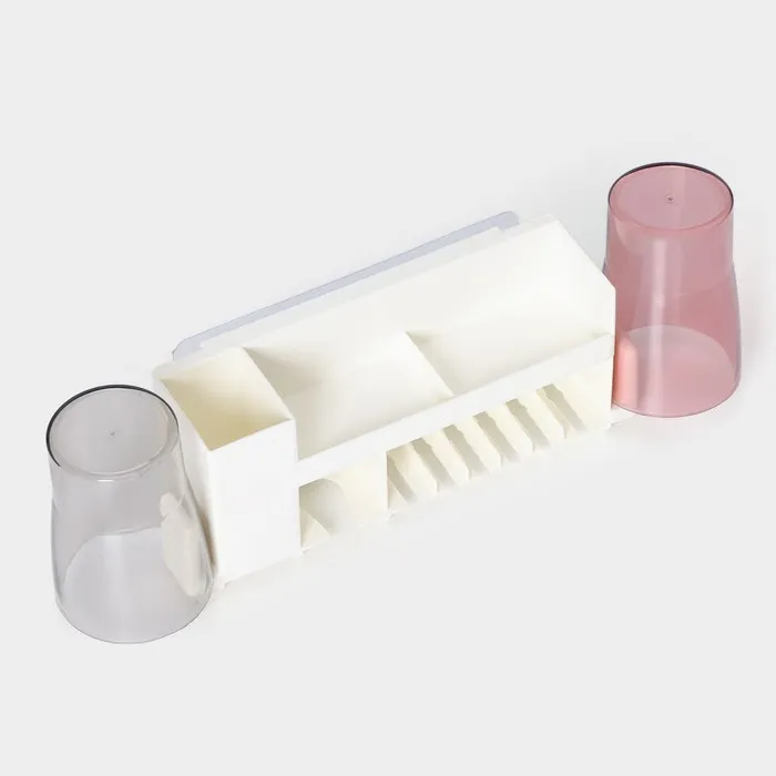 Держатель для зубных щеток с 2 стаканами - это стильное и практичное решение для хранения зубных щеток, пасты и других мелочей.