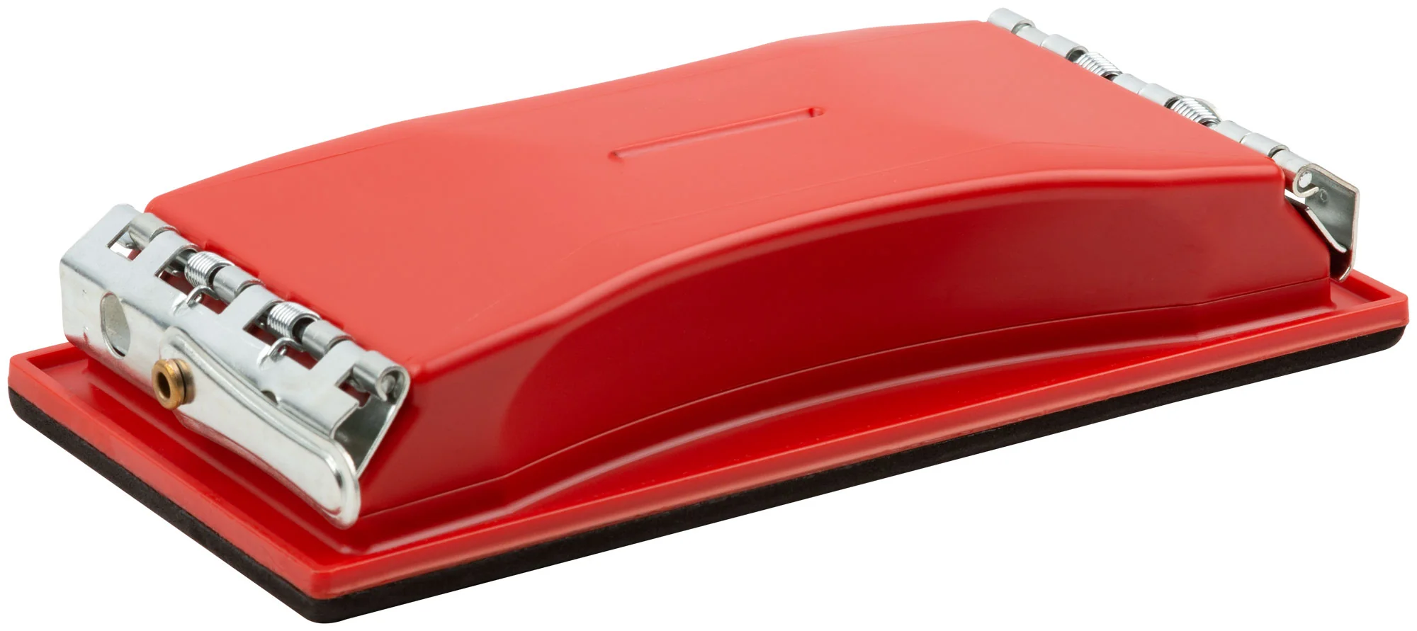 Изготовлен из прочного ABS пластика, который обеспечивает долговечность и устойчивость к ударам. Металлический прижим надежно фиксирует наждачную бумагу, не позволяя ей смещаться во время работы.