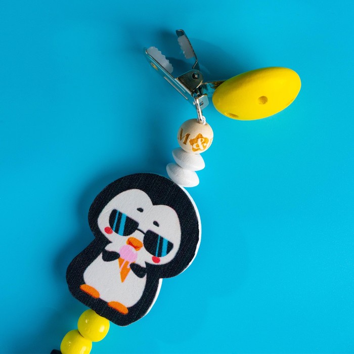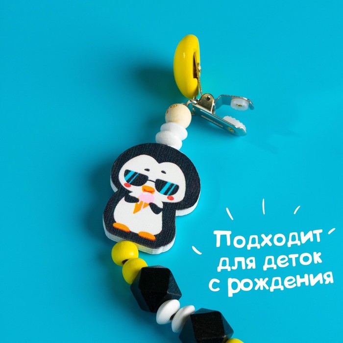 Держатель - игрушка для соски - пустышки «ТРЕНД. Пингвин», деревянный