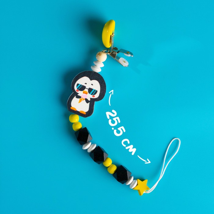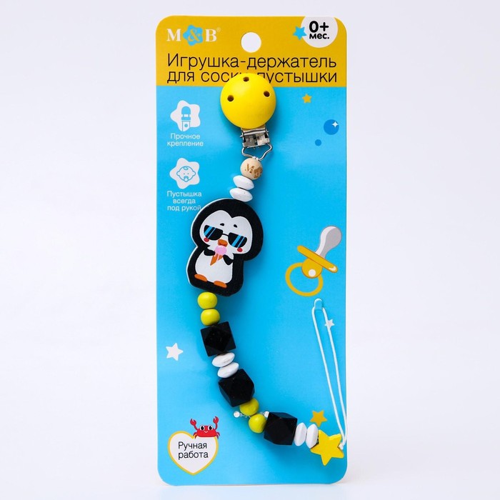 Держатель - игрушка для соски - пустышки «ТРЕНД. Пингвин», деревянный — Характеристики