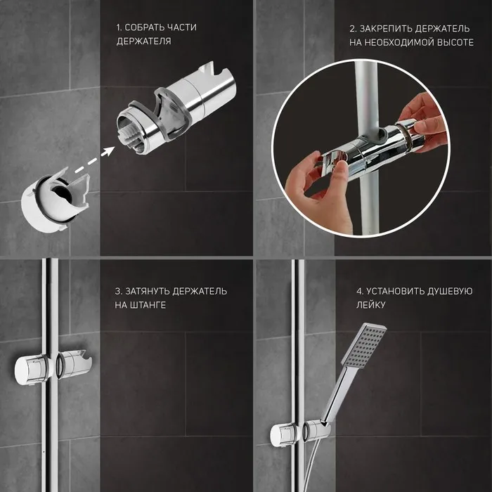 Держатель лейки для душевой стойки ZEIN Z87, универсальный 25 мм, пластик, хром — Характеристики