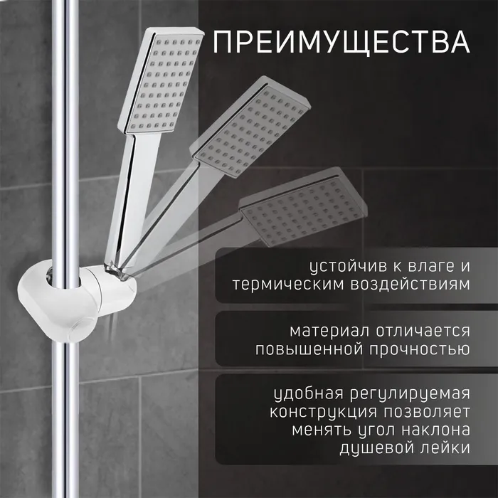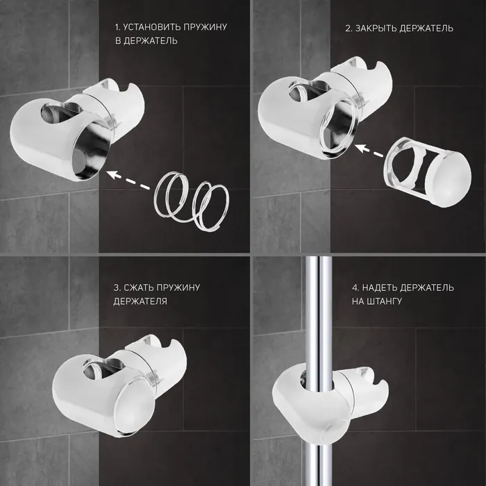 Пружинный механизм позволяет легко и быстро фиксировать душевую лейку в нужном положении, обеспечивая удобство и гибкость в использовании.