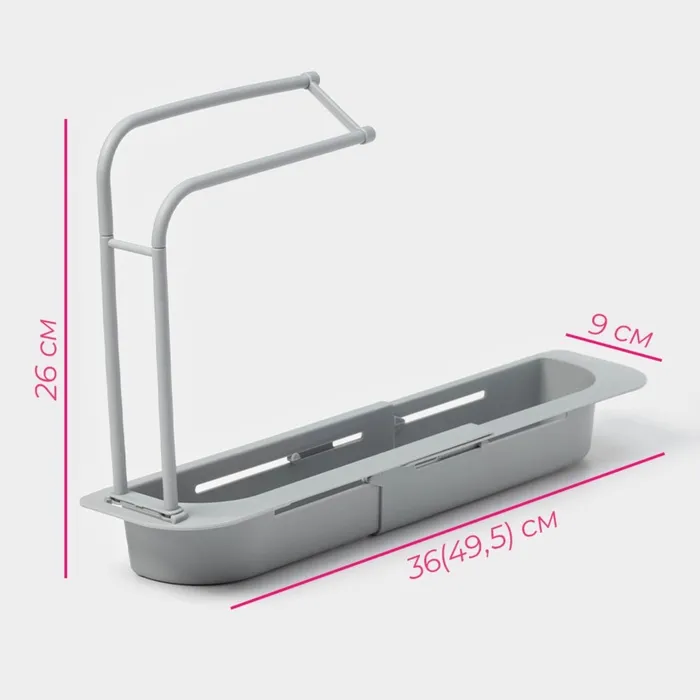 Держатель на раковину для кухонных мелочей Доляна, 36(49.5)×9×26 см, серый — Характеристики