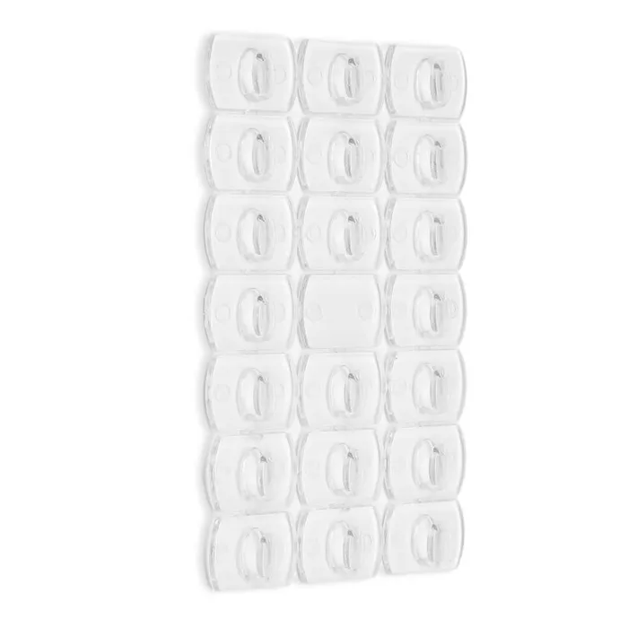 Комплект позволяет организовать пространство без применения инструментов и не повреждая поверхности. При необходимости клипсу можно удалить, потянув за клейкую полоску. При этом саму клипсу можно использовать повторно.