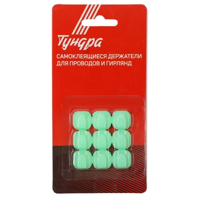 Держатель самоклеящийся для проводов и гирлянд ТУНДРА krep, 15х15х10 мм, зеленый, 9 шт. — Характеристики