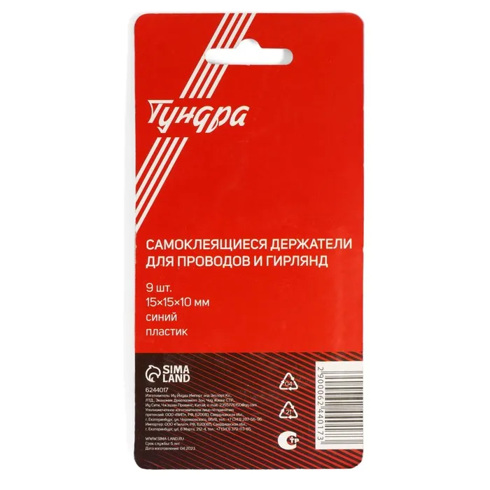 Держатель самоклеящийся для проводов и гирлянд ТУНДРА krep, 15×15×10 мм, синий, 9 шт. — Характеристики