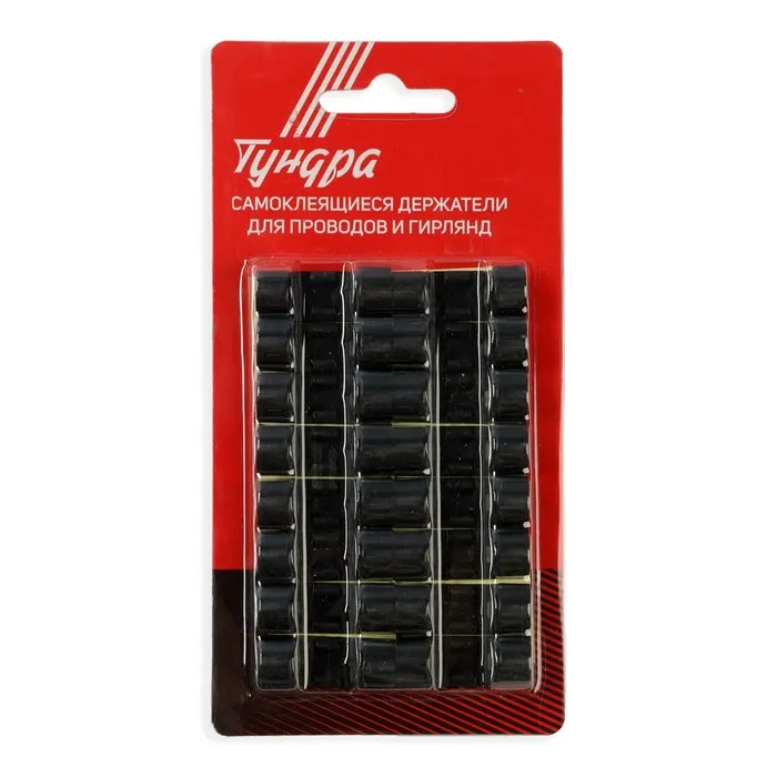 Держатель самоклеящийся для проводов и гирлянд ТУНДРА применяется для легкого, надежного и безопасного крепления разнообразных аксессуаров на вертикальной и горизонтальной поверхностях.