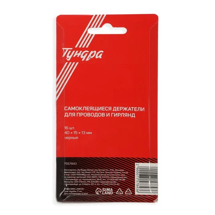 Держатель самоклеящийся для проводов и гирлянд ТУНДРА krep, 15×40 мм, черный, 16 шт. — Характеристики