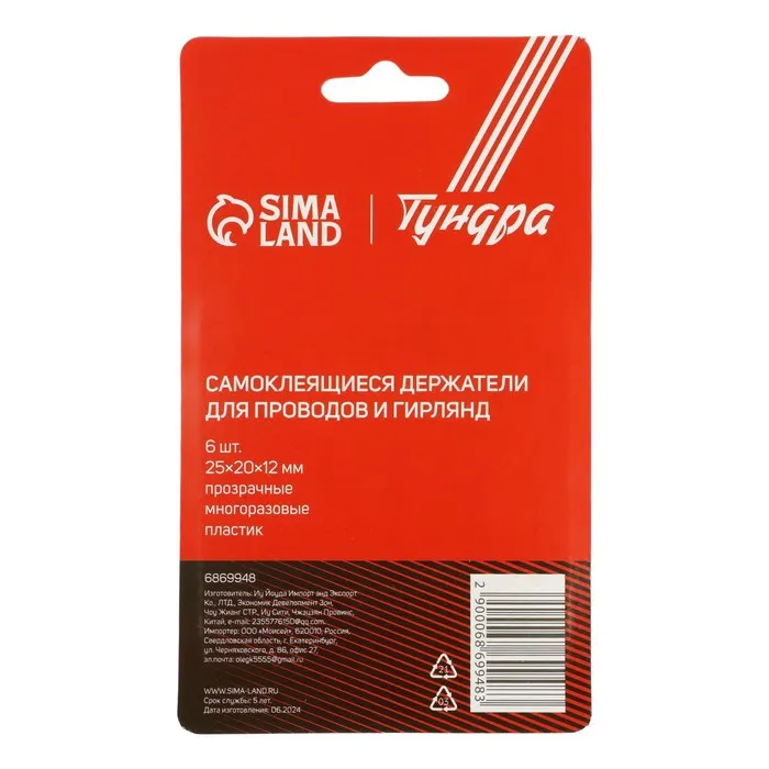 Держатель самоклеящийся для проводов и гирлянд ТУНДРА применяется для легкого, надежного и безопасного крепления разнообразных аксессуаров на вертикальной и горизонтальной поверхностях.