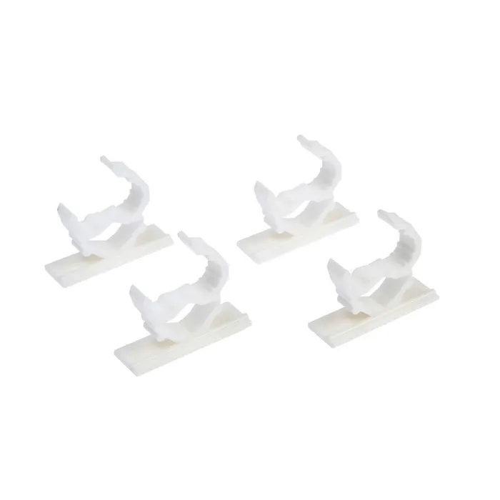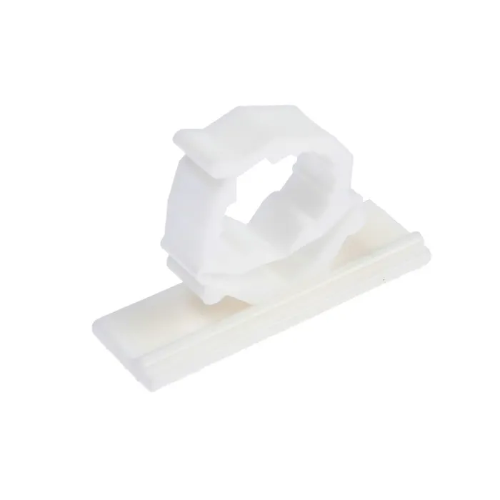 Крепление площадки к поверхности с одной стороны происходит благодаря слою нетвердеющего клеевого состава (адгезива) и клипсой с другой для фиксации кабеля или провода.