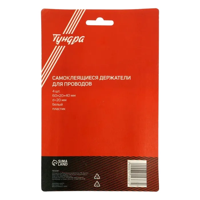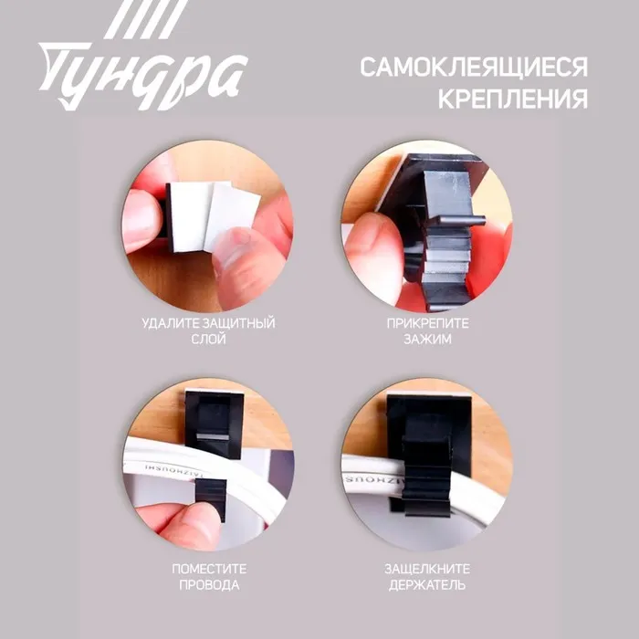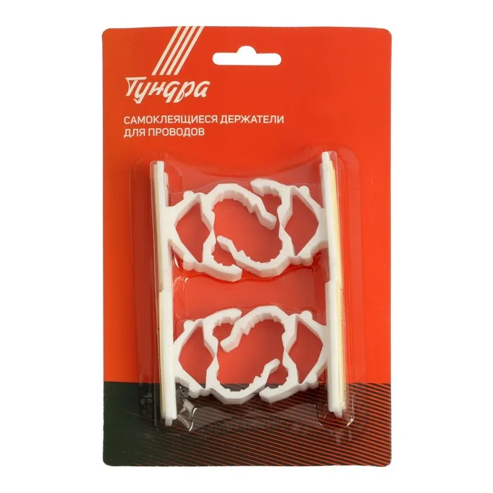 Держатель самоклеящийся для проводов ТУНДРА krep предназначен для крепления проводов или кабелей к поверхностям при проведении электромонтажных работ, а также для организации пространства в помещении.