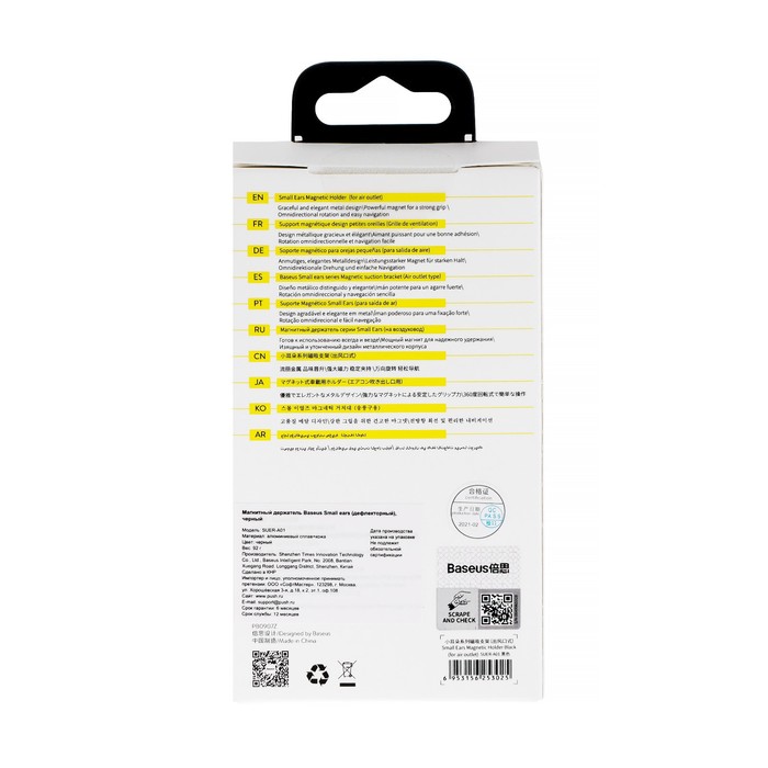 Автомобильный держатель Baseus Small Ears Series станет отличным помощником любому автомобилисту. Стильный дизайн идеально впишется в интерьер любого автомобиля. Благодаря креплению в дефлектор держатель не загораживает обзор, и Вы без труда сможете его переставить или убрать. Надежные и безопасные магниты гарантируют крепкую фиксацию смартфона.