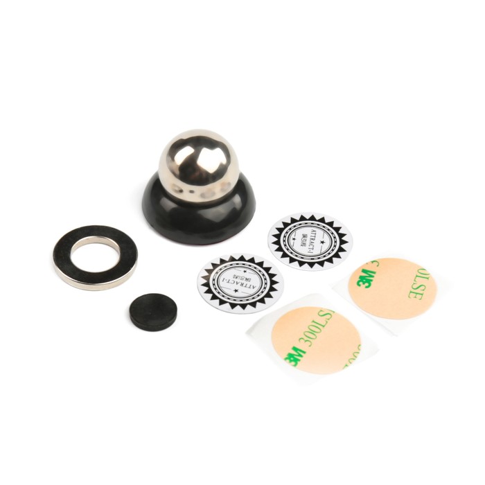 Магнитный держатель удобен тем, что в нём можно зафиксировать смартфон одной рукой. Принцип работы магнитного держателя заключается в том, что он состоит из двух частей, одна из которых крепится на держатель — неодимовый магнит, а другая часть фиксируется на мобильный телефон — металлическая пластина.
