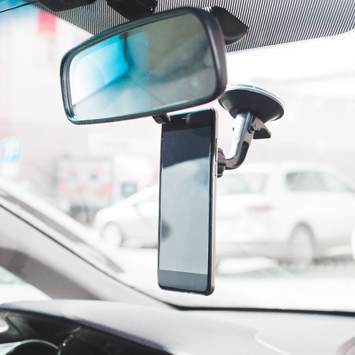 Держатель для телефона с магнитной основой и присоской для крепления к лобовому стеклу или другим ровным поверхностям. Телескопическая конструкция позволяет регулировать расстояние между магнитами для совместимости с разными моделями телефонов.