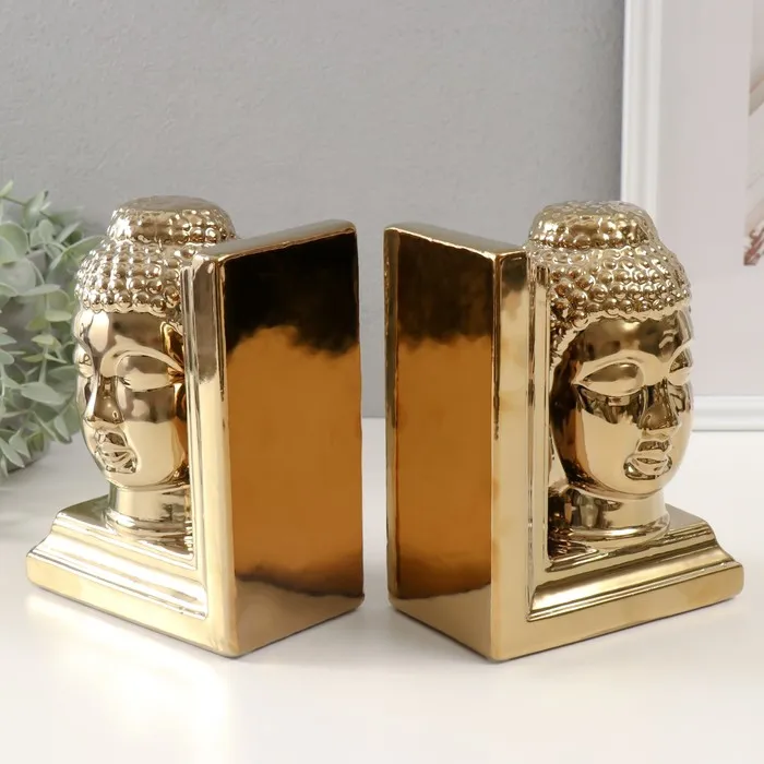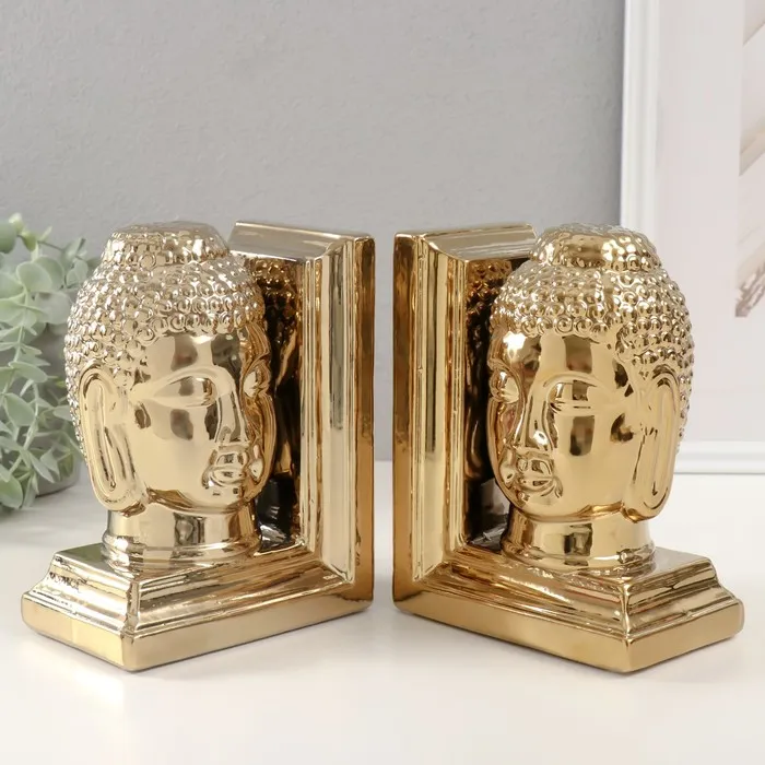 Держатели для книг керамика "Голова Будды" набор 2 шт золото 14,5х10х18,5 см — Характеристики