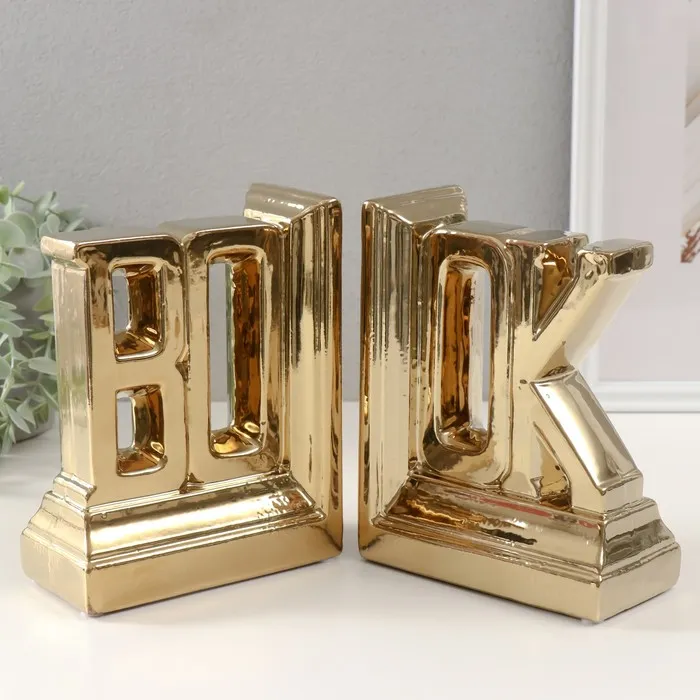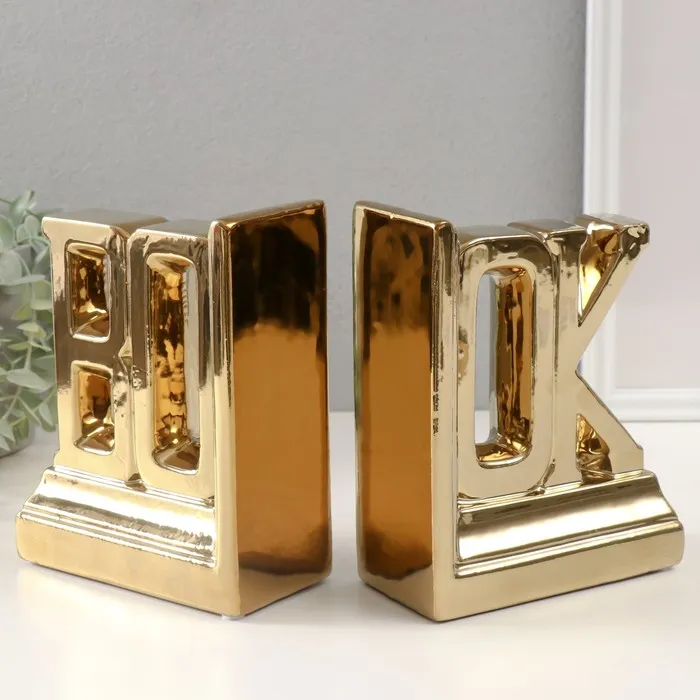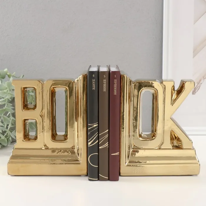 Держатели для книг керамика "Надпись - книга" набор 2 шт золото 28х7х17,5 см — Характеристики