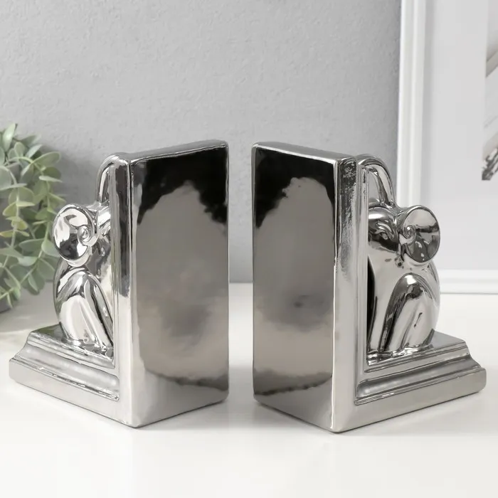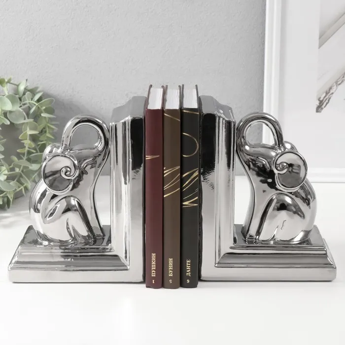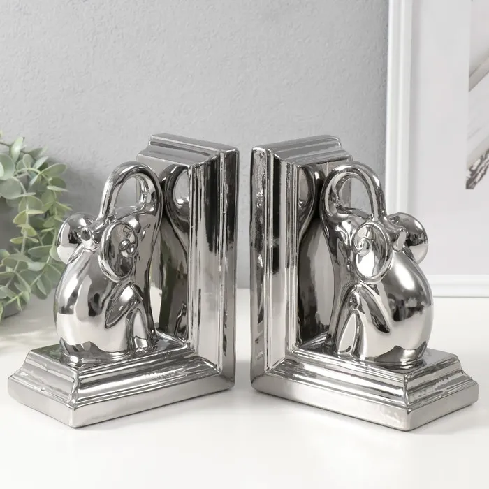 Держатели для книг керамика "Слоны" набор 2 шт серебро 14,5х9х18 см — Характеристики