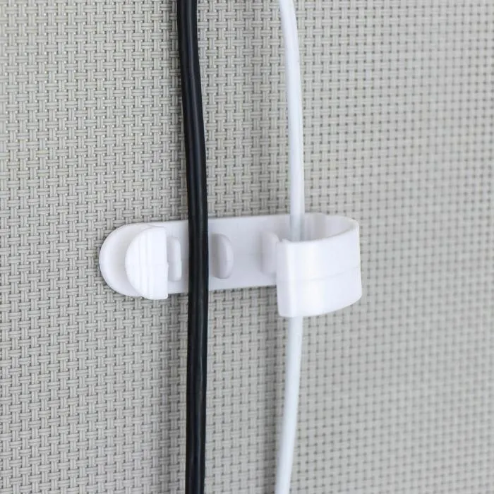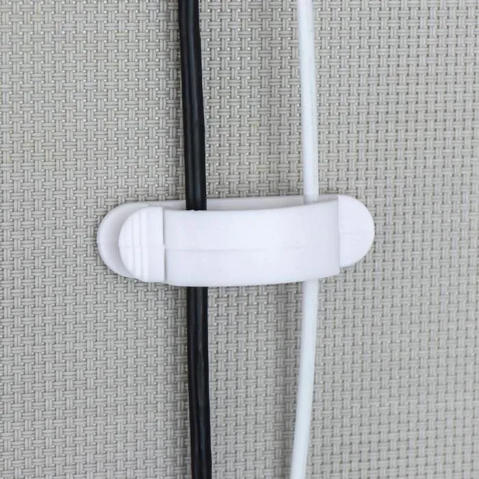 Изделие предотвращает спутывание проводов между собой и обеспечивает лёгкий доступ к ним. Достаточно прикрепить предмет в удобном для вас месте при помощи клеящейся основы и зафиксировать кабель.