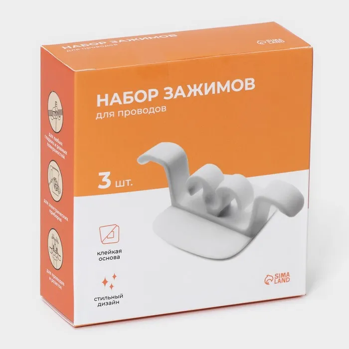 Держатели для проводов, самоклеящиеся, набор 3 шт., 9.5×5.3×2.5 см, пластик, белый/чёрный/серый — Характеристики
