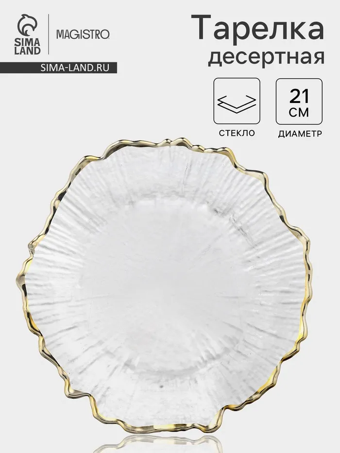 Десертная Magistro тарелка «Сияние», d=21 см, золотистая отводка, стекло, прозрачная — Характеристики
