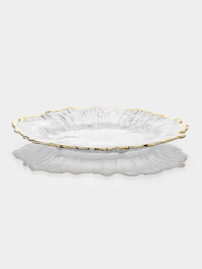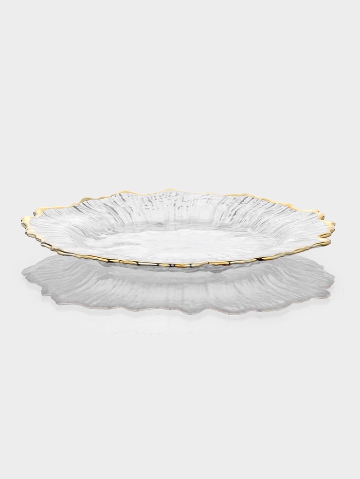 Прозрачное стекло с рельефной текстурой и золотой отводкой придаёт изделию изысканный вид, делая каждое угощение ещё более привлекательным.