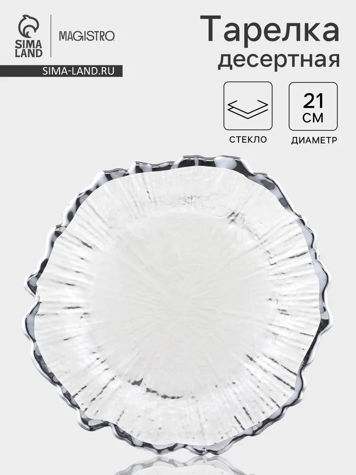 Десертная тарелка Magistro «Сияние», d=21 см, серебристая отводка, стекло, прозрачная — Характеристики