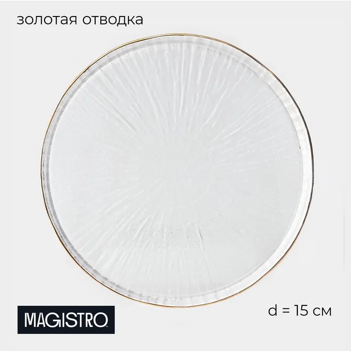 Десертная тарелка Magistro Water lily, d=15 см, стекло, с золотой каймой, прозрачная — Характеристики