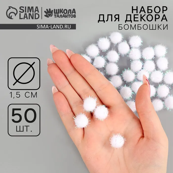 Детали для декора «Бомбошки с блеском», набор 50 шт., размер 1 шт. — 1,5 см, цвет белый перламутр — Характеристики