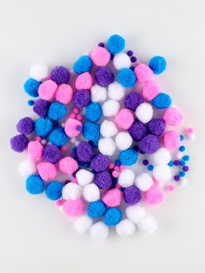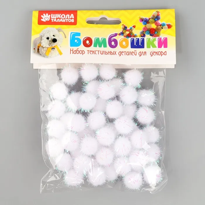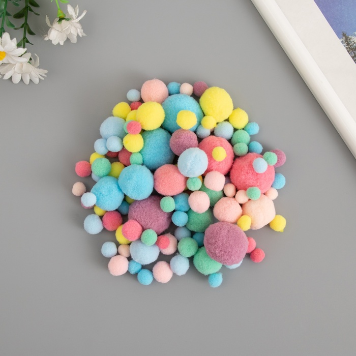 Набор текстильных бомбошек подойдёт для создания детских поделок и аппликаций, декорирования кукол и игрушек.