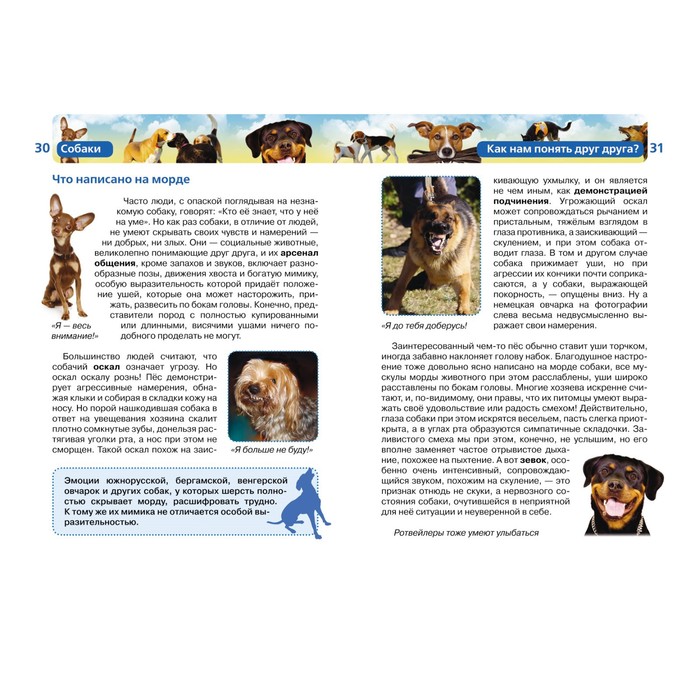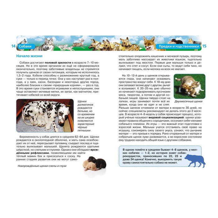 Собака - одно из наиболее популярных и распространенных животных. На протяжении нескольких тысяч лет она живет бок о бок с человеком. Собаки, самые преданные существа, прочно вошли в наше общество и заслужили звание "лучшего друга человека". В благодарность за преданность и безупречную службу во многим странам им установлены памятники. Цель этой энциклопедии - помочь людям лучше понять собак и научиться общению с ними. Читатель узнает историю одомашнивания собак, как менялось отношение к этим животным в разные эпохи. В книге также содержится интересная информация о различных породах собак.
