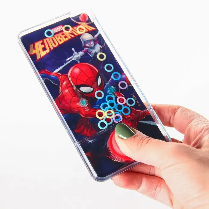 Развиваем ловкость с любимыми героями. Водная игра «Человек-паук» представляет собой классическое развлечение с кольцами, знакомое многим с детства. Принцип действия прост и увлекателен: нужно нажимать на кнопку, чтобы запустить поток воздуха в ёмкость с водой. Воздух поднимает кольца, и они начинают парить внутри игры.