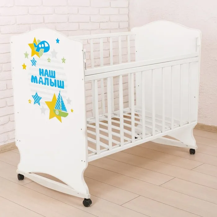 Детская кровать «Наш малыш» на колёсах или качалке, белая — Характеристики