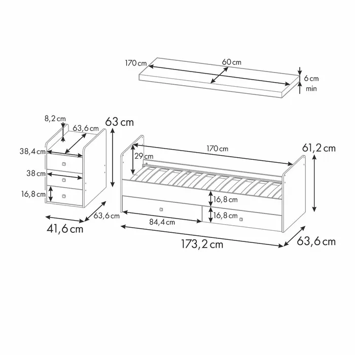 В комплект входит независимый комод с 3 ящиками и пеленальный столик. Эта кровать - оснащена механизмом качания ( маятник поперечного качания), что позволит убаюкать малыша в считанные минуты.