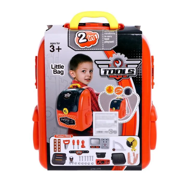 - Всё по-настоящему:в наборе — рюкзак с лямками и полный комплект инструментов. Молоток стучит, отвёртки крутят, пила режет (виртуально, конечно!). Каждый предмет повторяет функции настоящего инструмента в безопасной игровой форме.