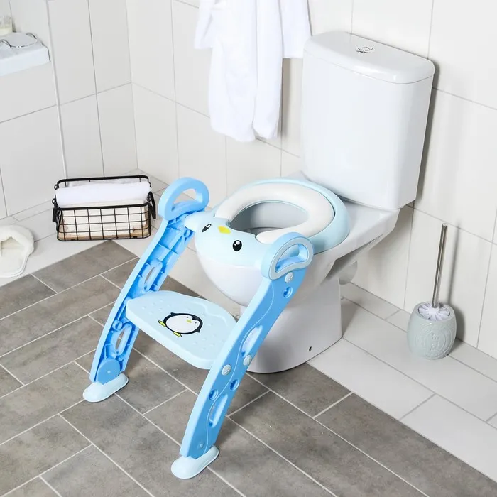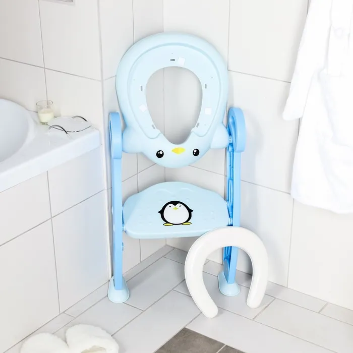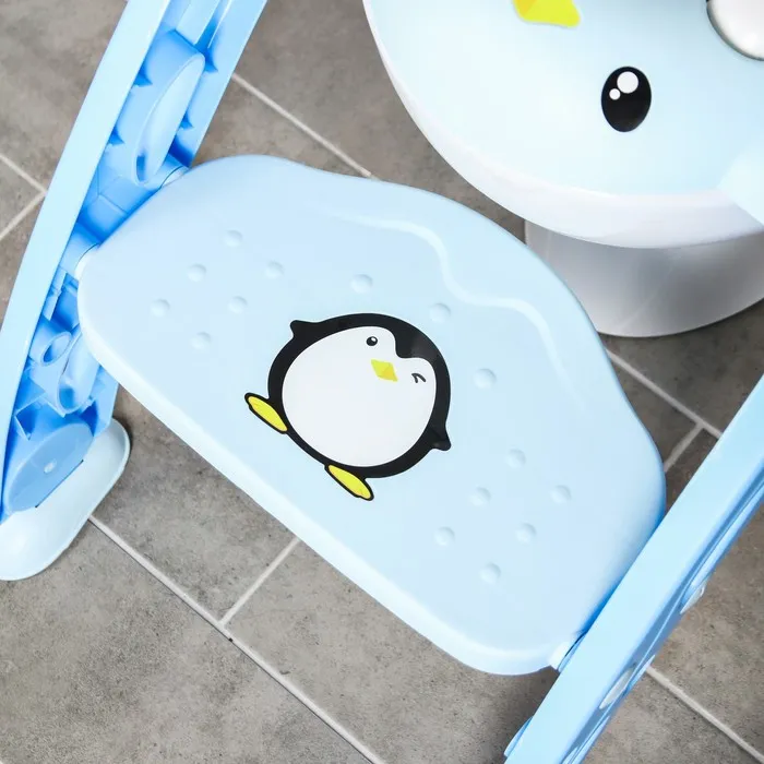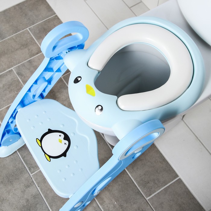 Конструкция имеет удобные поручни, поэтому ребенок может самостоятельно садиться на унитаз и слезать с него. Кроме того, ступенька служит подставкой для ног, когда малыш сидит на унитазе.