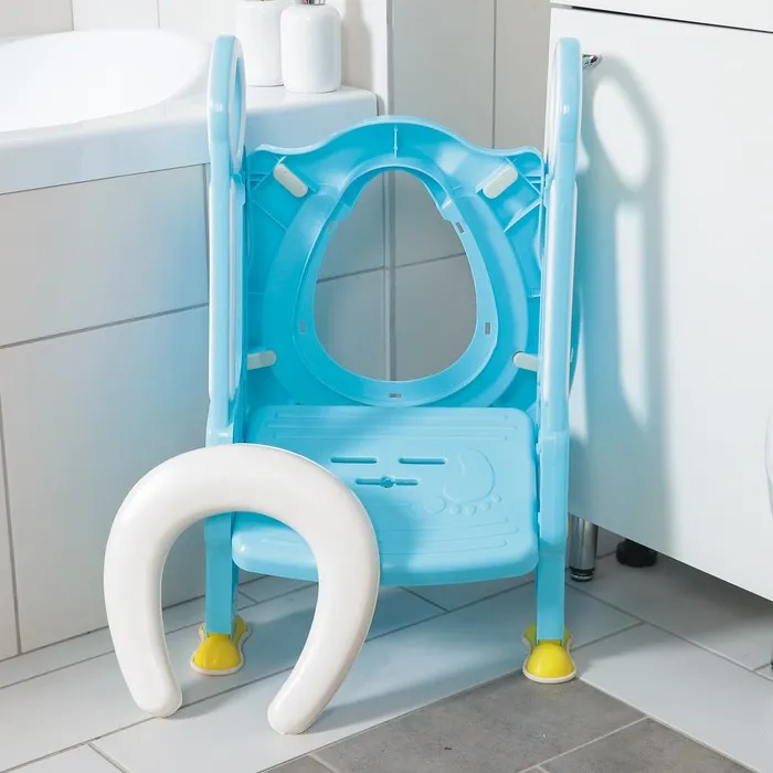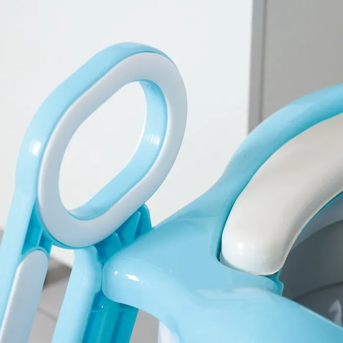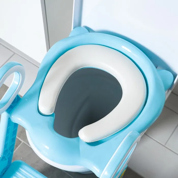 Детская накладка - сиденье на унитаз со ступенькой, с мягким сиденьем, цвет голубой — Характеристики