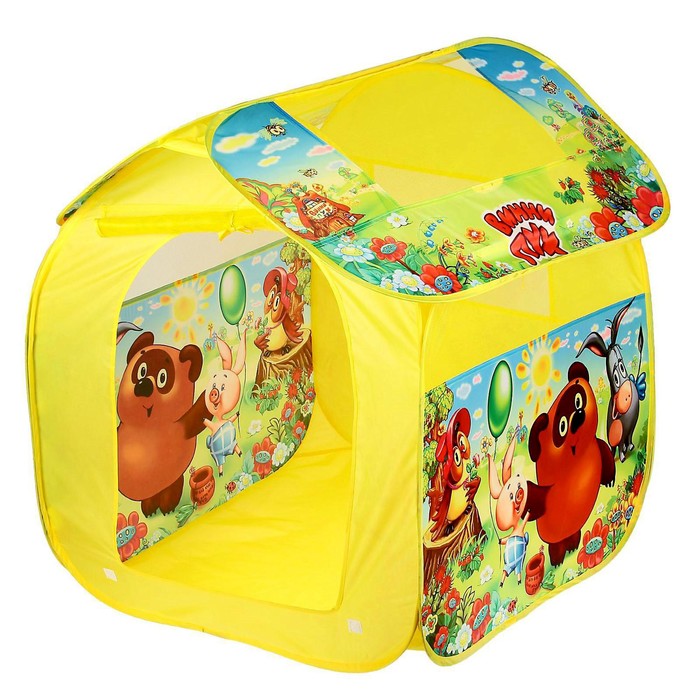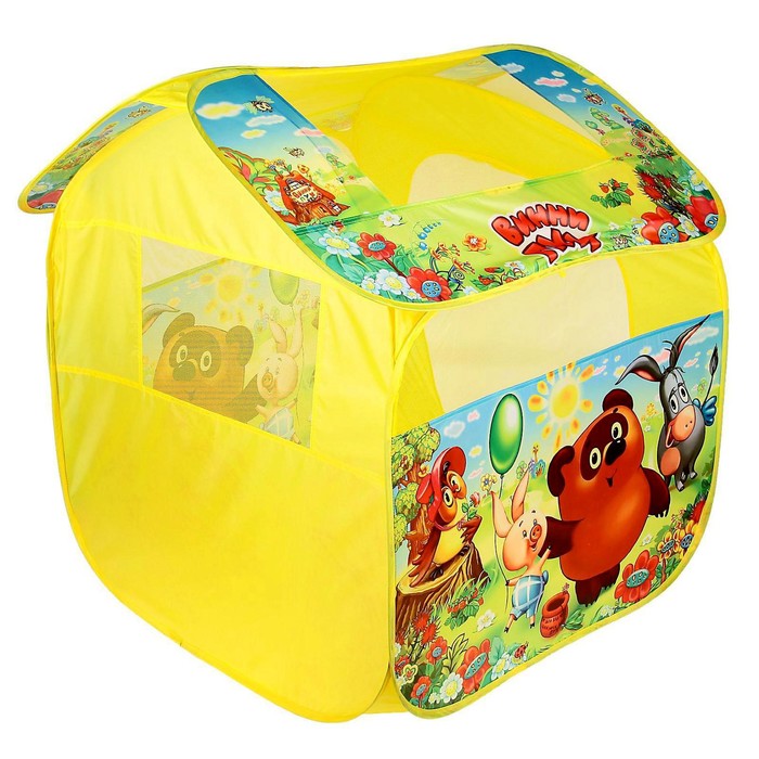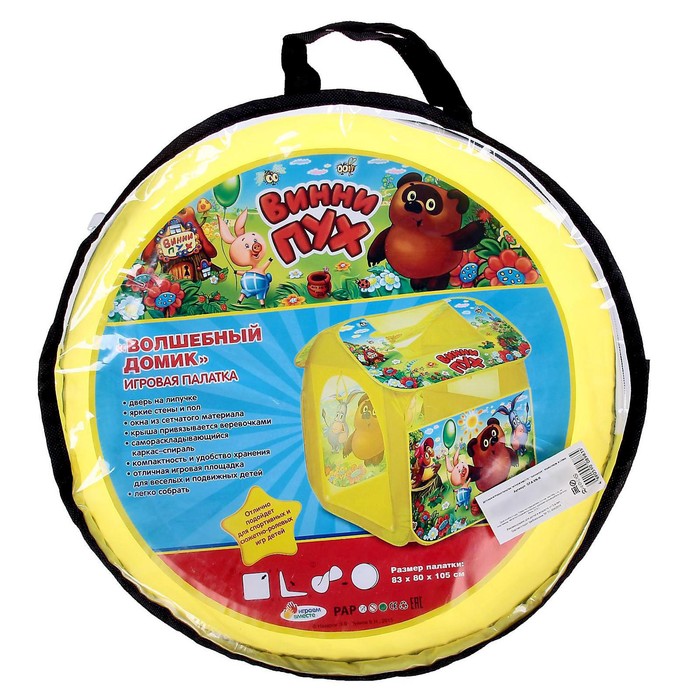 Детская палатка с изображением Медвежонка Винни и друзей станет отличной площадкой для весёлых и подвижных игр. Каркас домика выполнен из прочного пластика и покрыт износоустойчивым материалом. Благодаря лёгкой конструкции палатка без труда раскладывается и собирается. Текстильная шторка закрепляется на липучках. Окна оснащены сетчатыми вставками, которые позволяют воздуху свободно циркулировать в игрушечном домике.